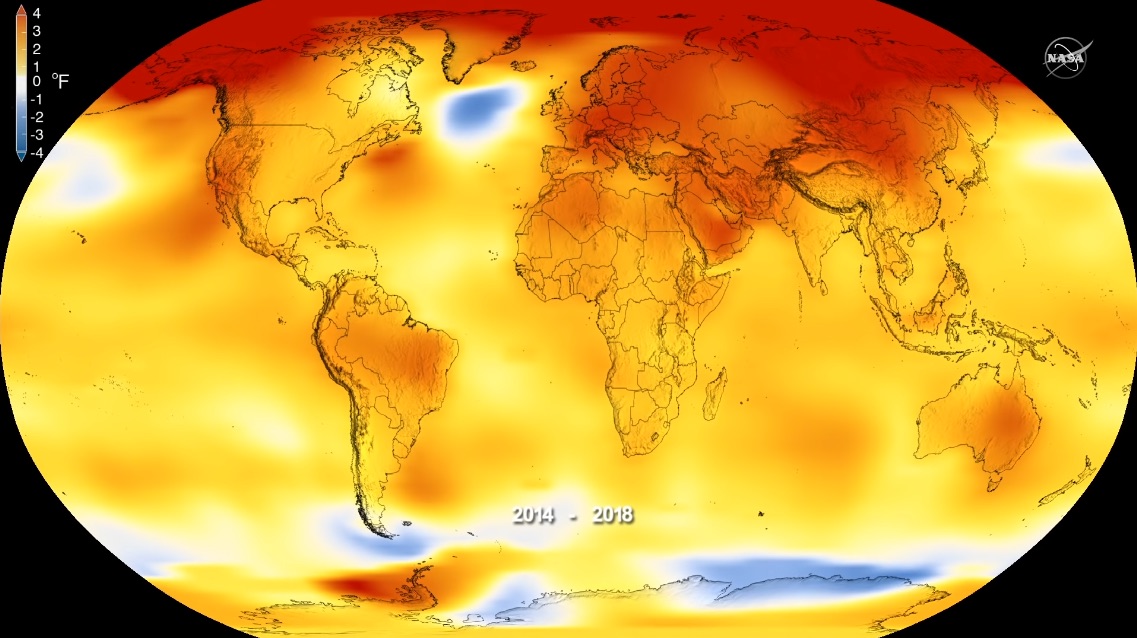 Las temperaturas globales en 2018 fueron 0,83ºC más altas que la media de 1951 a 1980, según científicos del Instituto Goddard de Estudios Espaciales (GISS) de la NASA en Nueva York. A nivel mundial, las temperaturas de 2018 están por detrás de las de 2016, 2017 y 2015. Los últimos cinco años son, colectivamente, los años más cálidos en el registro moderno.