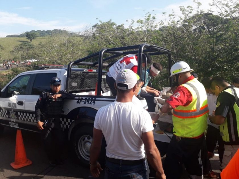 A través de un comunicado, el Gobierno del Estado ha brindado todo el apoyo necesario para la atención de decenas migrantes que resultaron heridos, tras volcarse el camión tipo torton, color blanco con caja seca, en el que viajaban sobre la Carretera Federal 180.
