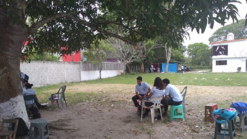 “Estamos pasando por situaciones bastantes incómodas en el CETMAR número 20, extensión Tamiahua, ubicado actualmente en la comunidad Estero de Milpas. Las condiciones en las que los jóvenes toman su educación son bastante inhumanas e insalubres, ya que algunos de los jóvenes tienen que tomar sus clases bajo los árboles”.