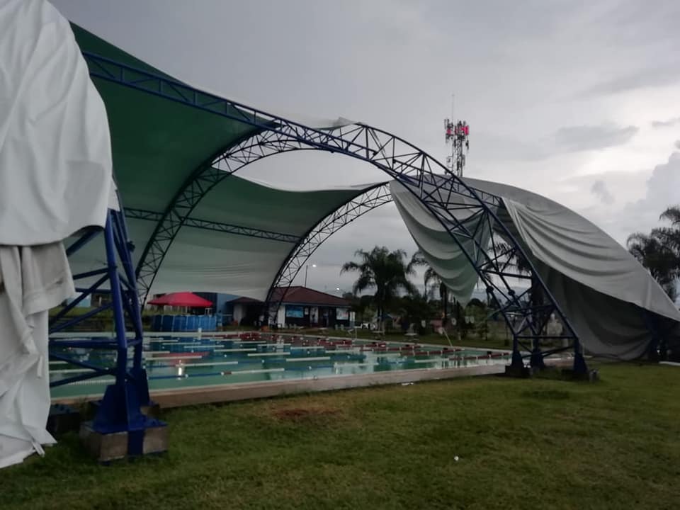 Además se presentó un socavón en avenida 17 y calle 4, tapas de brocales reventadas, cableado eléctrico haciendo corto al contacto con bambúes, en el Fraccionamiento Campestre, además de desprendidos en el toldo que cubre la alberca Huilango.
