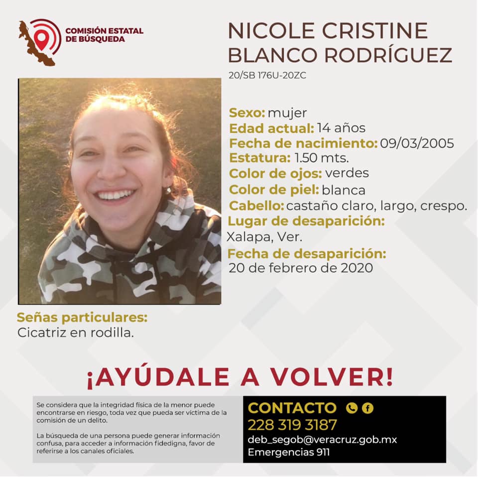 Luego de reportar su desaparición, la Comisión Estatal de Búsqueda emitió la alerta correspondiente y facilita el número telefónico 228 319 3187 para proporcionar información que ayude a su localización.