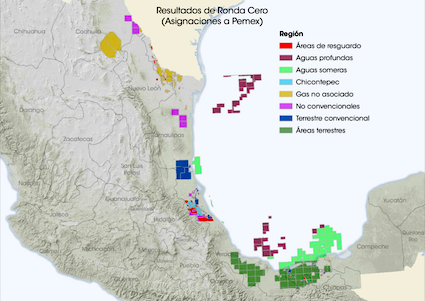 No obstante, recordaron que Pemex aún mantiene 29 bloques de hidrocarburos no convencionales otorgados mediante asignaciones en la Ronda Cero, correspondientes a veinte bloques de extracción y exploración en el área del Paleocanal de Chicontepec, entre los estados de Veracruz y Puebla, y nueve más para exploración en Coahuila, Veracruz, Puebla y Tamaulipas.
