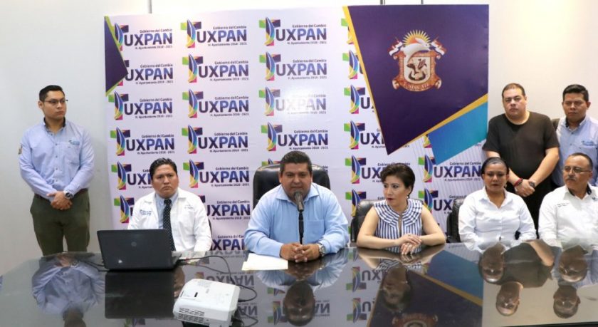 Tuxpan, Ver.- En conferencia de prensa, el Presidente Municipal Juan Antonio Aguilar Mancha, acompañado de la Presidenta del DIF Municipal, Elda García Martínez, así como del Director de Salud Municipal Josué Andrade Cruz y directores municipales, dio a conocer que, ante la propagación a nivel mundial del COVID-19 y en atención a las recomendaciones y medidas implementadas por la Organización Mundial de la Salud (OMS) y la Secretaría de Salud Federal y Estatal, el H. Ayuntamiento ha decidido tomar las medidas preventivas necesarias, con el fin de salvaguardar la salud e integridad de los tuxpeños.