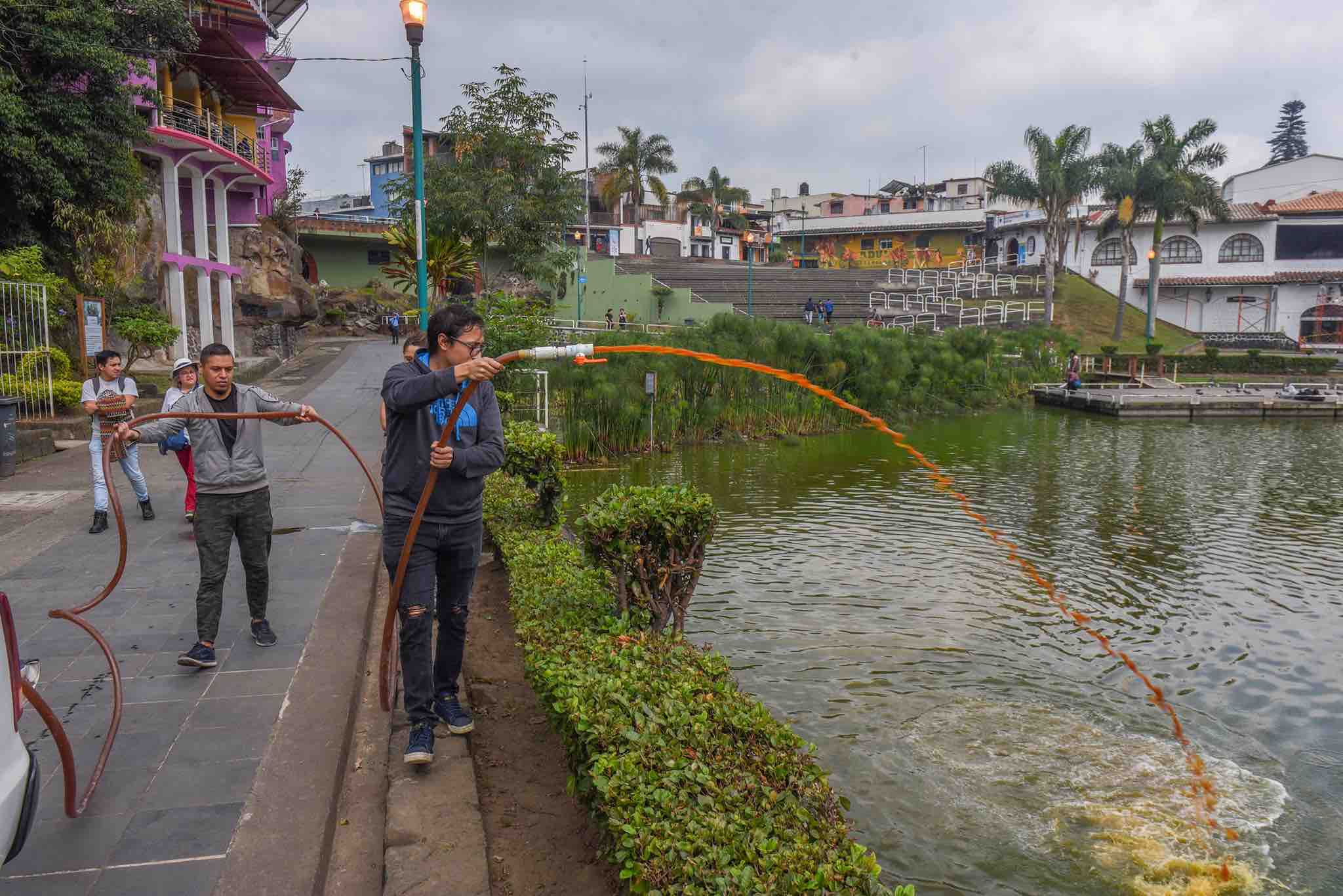 Xalapa, Ver.- Mediante la aplicación de microorganismos para mejorar la calidad del agua, eliminar olores y controlar patógenos, inició el saneamiento del Paseo de Los Lagos, donde el Ayuntamiento invierte 6 millones de pesos para devolver la belleza escénica de este lugar.