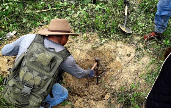 A espaldas de un lujoso conjunto residencial, en los límites entre Poza Rica y Papantla, integrantes de la Quinta Brigada Nacional de Búsqueda de Personas Desaparecidas, localizó un predio en el que presuntamente grupos criminales se dedicaban a “cocinar” en ácido a sus víctimas.