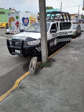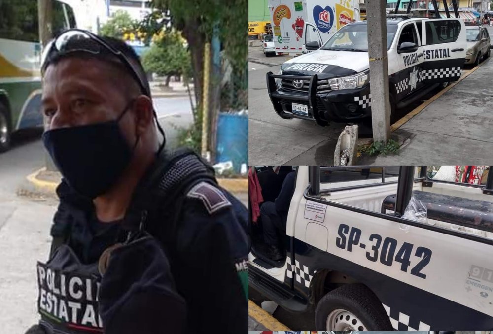 Usuaria de redes sociales reportó el hecho, agregando fotografías del elemento y la patrulla en la que se moviliza junto con dos elementos más, la unidad SP-3042 de la Policía Estatal destacamentada en esta ciudad.