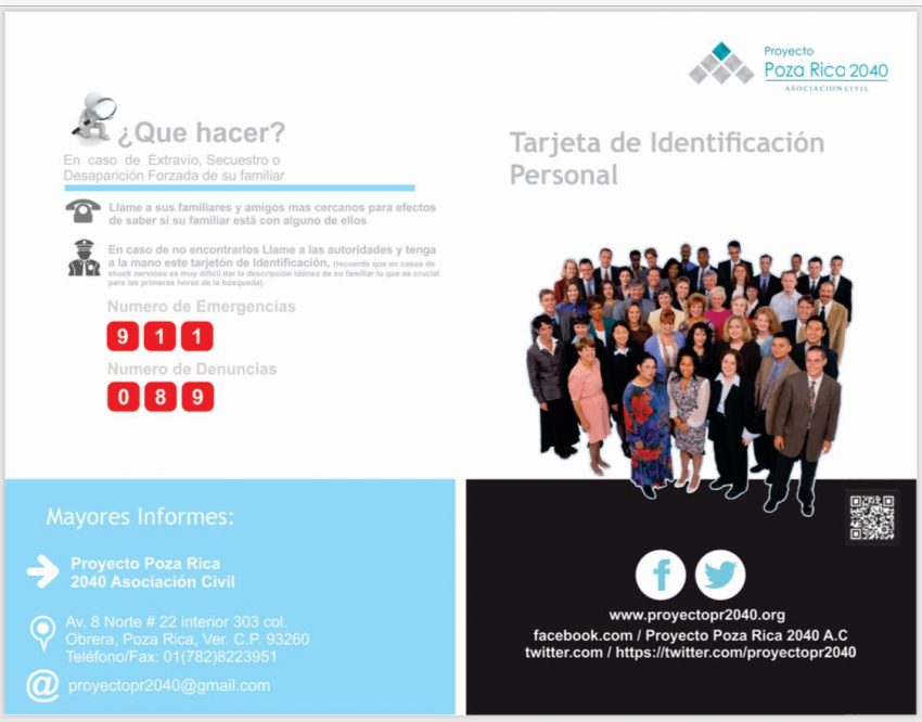 Poza Rica, Ver.- Organizaciones no gubernamentales impulsan la creación de una Tarjeta de Identificación Personal que pueda ser empleada en casos de personas desaparecidas. El rezago en este sentido supera los más de 47 mil cuerpos en todo el país sin poder identificarse por la falta de este tipo de información.