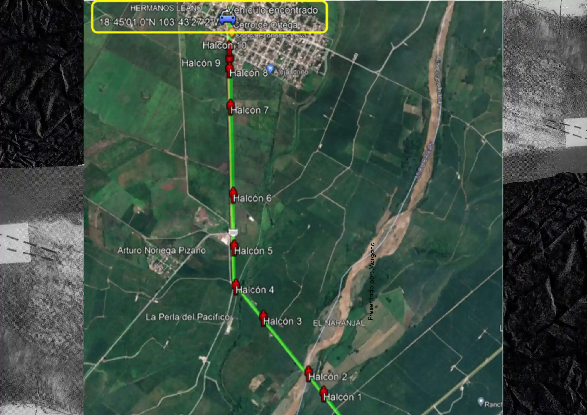 Junto a esta declaración figura un mapa en el que se observa la distribución, desde el río Coahuayana hasta Cerro de Ortega, de diez halcones y tiradores que habrían participado en la vigilancia y posterior desaparición de los defensores.