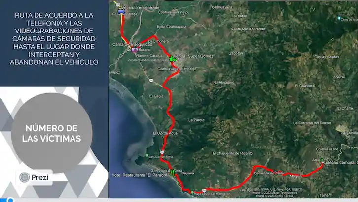 El documento de la FGR, creado con el programa Prezi y al que tuvieron acceso A dónde van los Desaparecidos y Quinto Elemento Lab, fue elaborado por la Fiscalía Especializada en Investigación de los Delitos de Desaparición Forzada (FEIDDF), y su última actualización fue  en agosto de 2023. Muestra en 51 diapositivas información procedente de la carpeta de investigación, como análisis de videos y telefonía, nombres y direcciones de presuntos implicados, y personas vinculadas a proceso, y una cronología hora por hora de las actividades que llevaron a cabo los defensores el día de su desaparición. Fuentes cercanas al caso han confirmado la validez de la información.