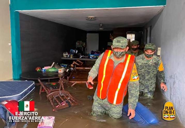 Por su parte, la Secretaría de la Defensa Nacional informó que derivado de las intensas lluvias ocasionadas por la entrada del Huracán Delta, el Ejército Mexicano aplica el Plan DN-III-E, en sus Fases de prevención y auxilio en apoyo a la sociedad civil.