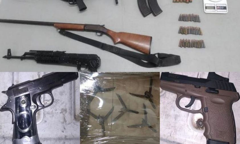 Derivado del trabajo de inteligencia y de operaciones estratégicas, se logró la localización de los presuntos criminales a quienes les fueron aseguradas armas de fuego cortas y fusiles de asalto, ponchallantas, droga; una camioneta Jeep Liberty, placas UAV3082, la cual cuenta con reporte de robo, así como cartulinas con mensajes de amenaza firmadas por el autodenominado Grupo Sombra.
