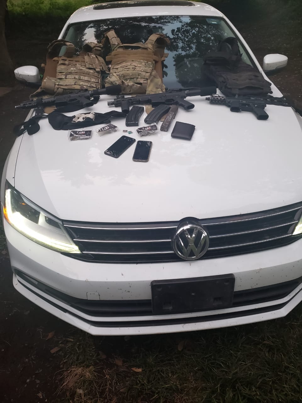 Los arrestados en el operativo fueron Kevin “N” de 18 años; Julio César “N” de 22 y Moisés “N” de 25; y se decomisaron dos armas largas sin marcas ni matrículas, y cada una con un cargador abastecido de 27 cartuchos, calibre 2.23; un arma larga marca Intratec, modelo tec-9, calibre 9 mm, con matrícula 06299 y con un cargador abastecido de 21 cartuchos, calibre 9 mm.