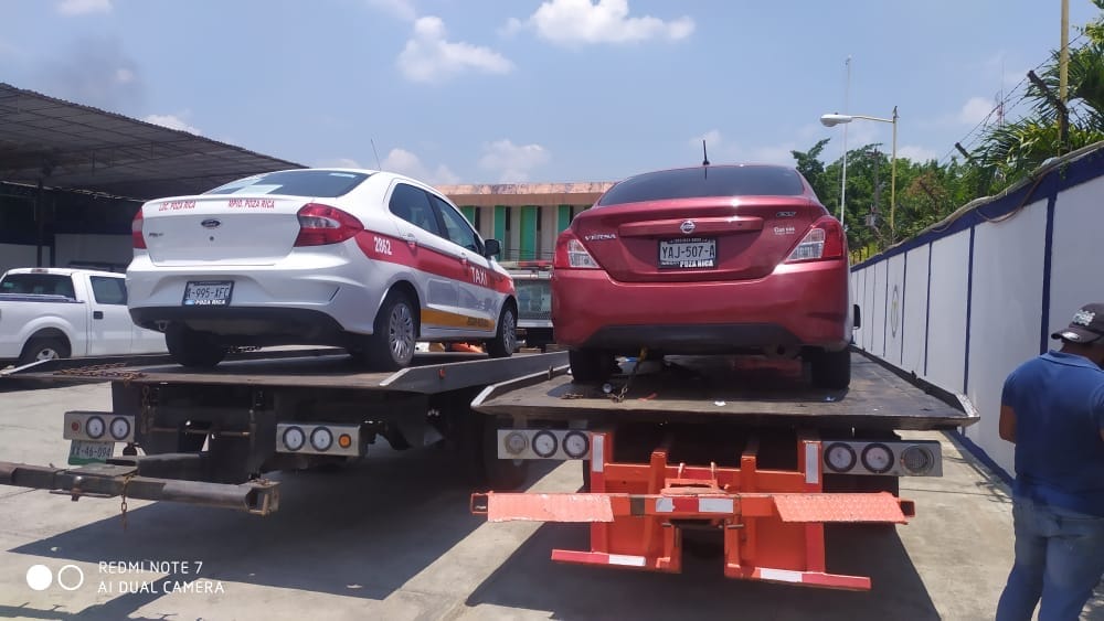 Luego de un reporte al 911 sobre personas armadas a bordo de dos vehículos: un Nissan Versa y un taxi marca Ford con número económico 2862, placas YAJ507A y A995XFC, respectivamente, en la entrada del fraccionamiento residencial Tajín, los efectivos se trasladaron al lugar, pero los ocupantes, al notar la presencia policial, escaparon.