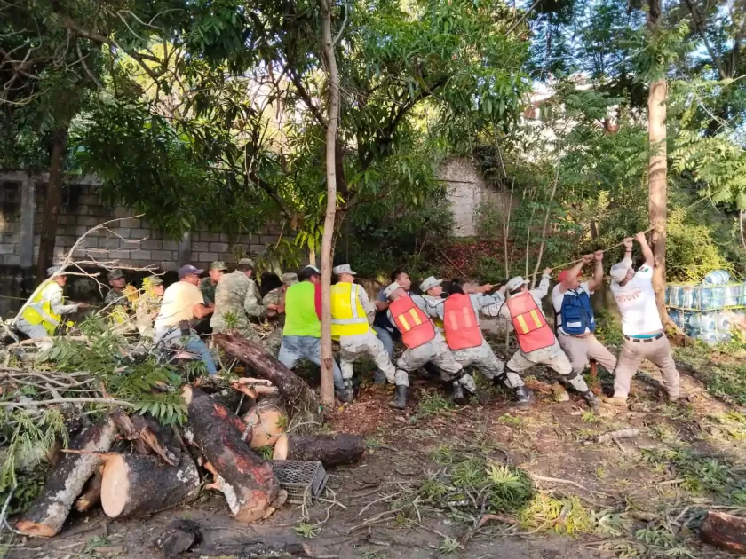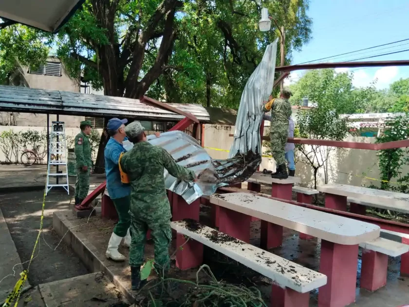 En el Municipio del Higo, Veracruz, el mismo batallón atendió la caída de un árbol en la Escuela Primaria “Vicente Guerrero”, provocada por las intensas lluvias asociadas a la tormenta. Se llevaron a cabo trabajos de remoción de escombros para asegurar la continuidad de las actividades escolares.