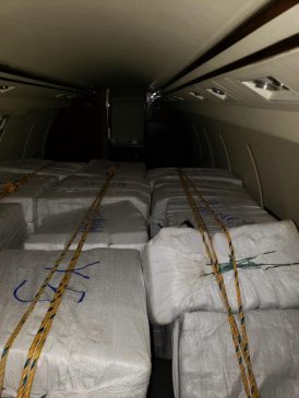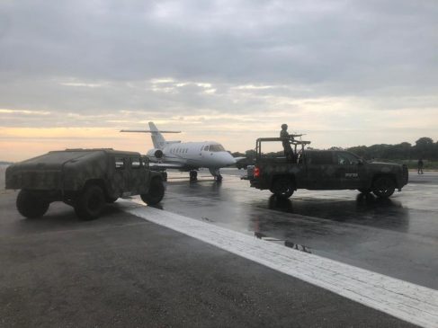 En el seguimiento se pudo establecer que la aeronave ilícita inició su descenso en el estado de Quintana Roo, por lo que tropas jurisdiccionadas a la 34/a. Zona Militar, activaron la ocupación de pistas y áreas de probable aterrizaje, lo que motivó que la aeronave realizara su descenso en el Aeropuerto Internacional de Chetumal, Q. Roo, lugar donde se aseguró lo siguiente: