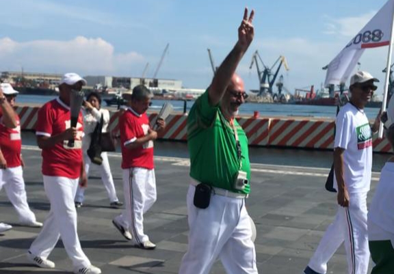 Veracruz, Ver.- Esta mañana, en el malecón de la ciudad de Veracruz, frente a la estatua a Venustiano Carranza, se recordó el histórico momento en que llegó a México, por primera vez, el fuego olímpico.