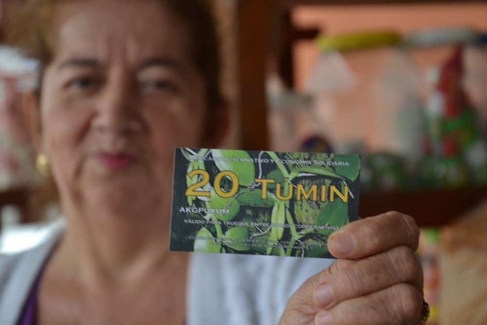 La clave de las economías solidarias es precisamente tratar de restarle poder al dinero y que éste sirva para ayudar a la gente, que esté al servicio de las personas y al revés; el Túmin no sirve para generar riqueza, pero permite que la riqueza se mueva entre la comunidad.