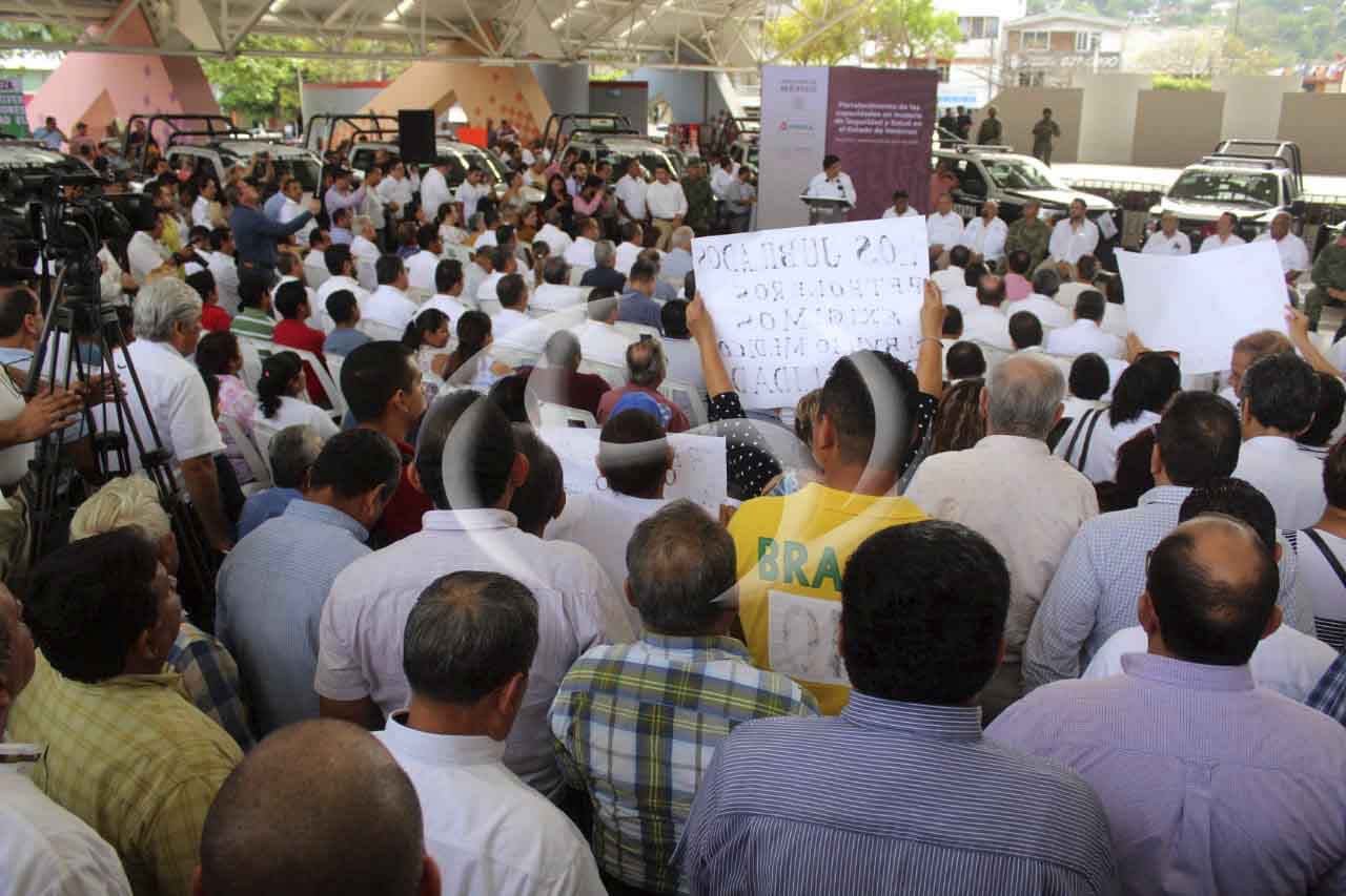 Al finalizar el evento, Ader Óscar Juárez Téllez, representante legal de los ex policías, buscó acercarse al gobernador para mostrarle evidencia de supuestos cheques que fueron cobrados por personas desconocidas, como finiquito a su relación laboral, encontrando el rechazo del mandatario.