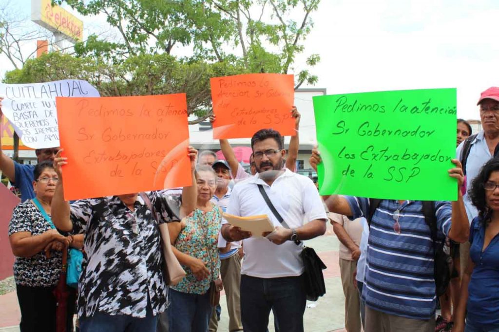 Ex integrantes de la Policía Intermunicipal, dado de baja en julio de 2015 por instrucciones del entonces gobernador, Javier Duarte de Ochoa, se manifestaron ante el gobernador Cuitláhuac García Jiménez, para solicitar de nueva cuenta el apoyo para que se les reconozcan sus derechos como ex trabajadores del Estado y se les cubran los pagos pendientes tras su liquidación.