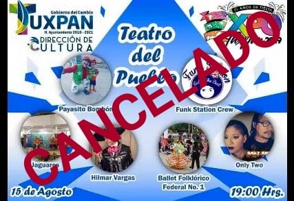 Comunicamos a todos ustedes que nuestra participación en el Teatro del Pueblo de la Expo Tuxpan 2019 queda CANCELADA.