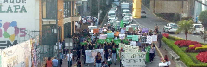 Con pancartas, pañuelos verdes y aerosol, mujeres de la capital del estado, Xalapa, salieron a pedir por sus derechos en el marco del Día Internacional para Erradicar la Violencia contra las Mujeres.
