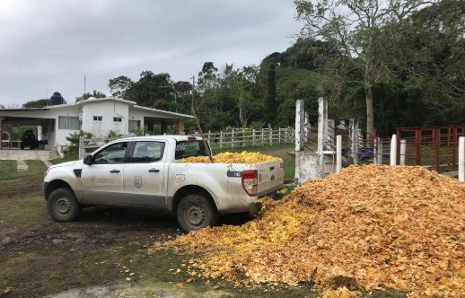 En las imágenes se aprecia el vehículo transportando cáscara de naranja que es utilizada como alimento para ganado.