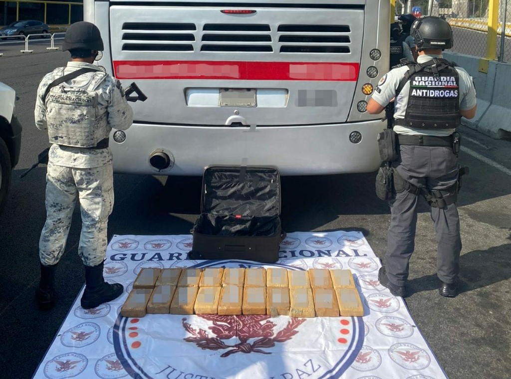 Durante la revisión de un autobús de pasajeros que tenía como destino Morelia, Michoacán, elementos de la Dirección General Antidrogas de la Guardia Nacional (GN) decomisaron alrededor de 20 paquetes de aparente cocaína, que eran transportados en la cabina de conductores.