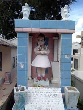 Lo escalofriante de la historia, es que sus familiares mandaron hacer encima de su bóveda un monumento que hace referencia a una niña comiendo un taco, le llevan juguetes y dulces, pero en la actualidad no saben quién lo hace.