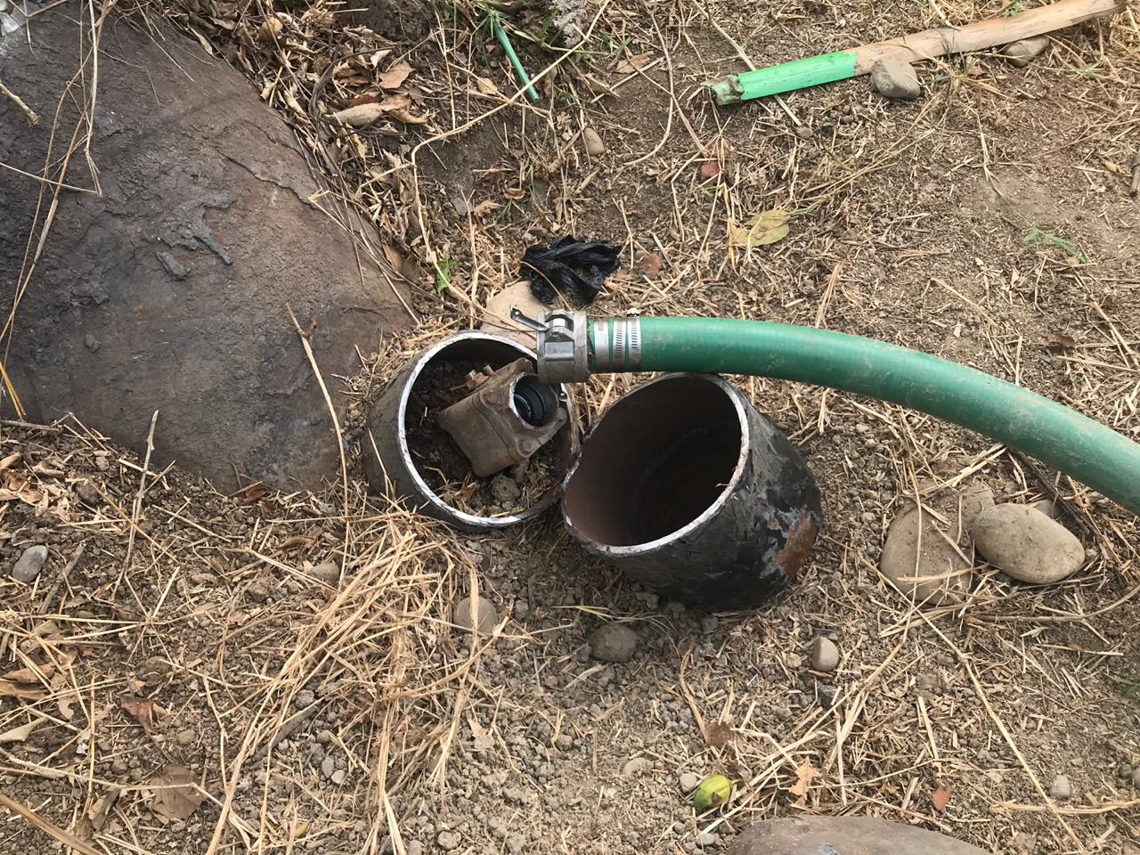 En el sitio se encontró también una manguera de metros de largo, entre la toma y la camioneta.