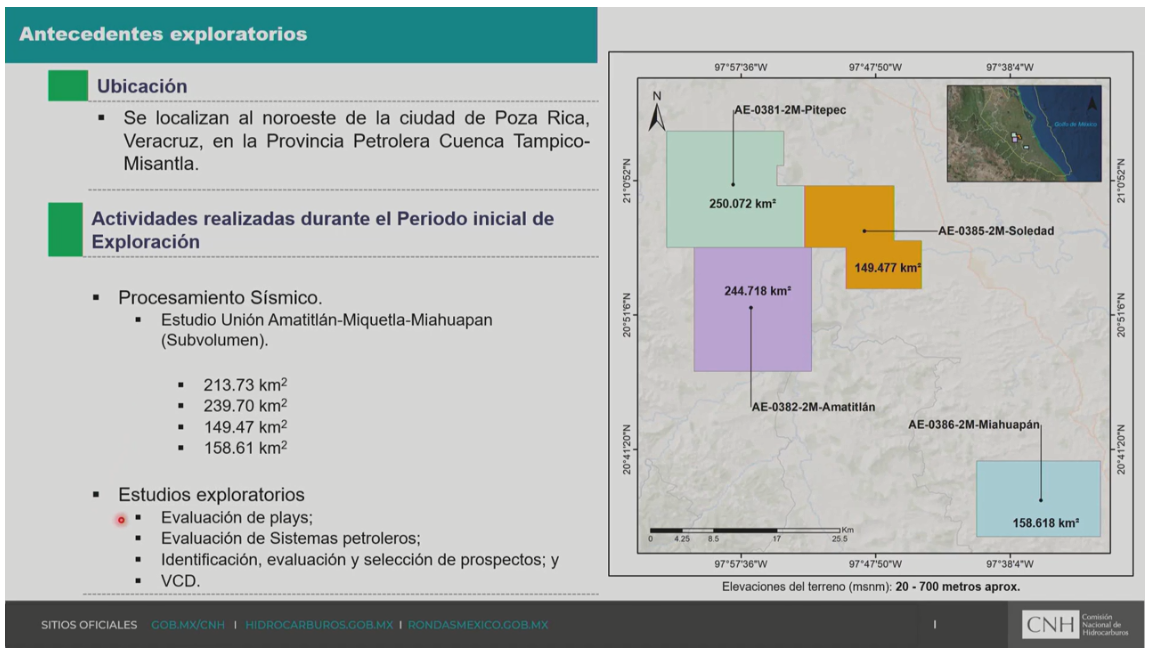 Ciudad de México –El pasado 11 de febrero, durante la Octava Sesión Extraordinaria del Órgano de Gobierno de la Comisión Nacional de Hidrocarburos (CNH), se presentó y aprobó la Resolución para la modificación de cuatro Planes de Exploración presentados por Pemex Exploración y Producción, correspondientes a las Asignaciones AE-0381-2M-Pitepec, AE-0382-2M-Amatitlán, AE-0385-2M-Soledad y AE-0386-2M-Miahuapán en la Cuenca Tampico Misantla. Se trata de la aprobación de exploración en formaciones no convencionales que incluye autorizar el uso de fractura hidráulica.