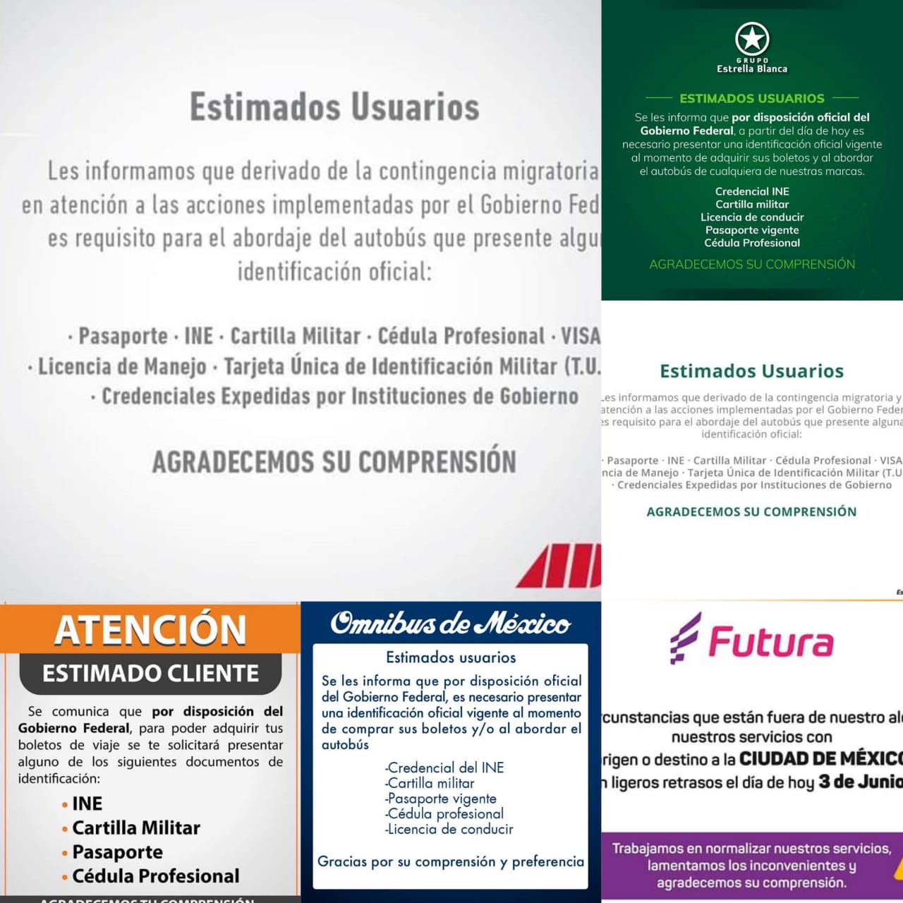 Estas son las empresas de autotransporte público de pasajeros que han atendido el llamado del Gobierno Federal y lo han publicado en sus redes sociales: