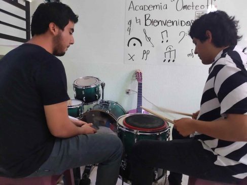 Sin mayor pretensión, Lorena López, reconocida conductora de noticias en la ciudad de Poza Rica, ha abierto las puertas de su casa a Daniela Ángeles, Miguel Madera, Ome Ovando y David Jesús Marín, para iniciar en aquella pequeña sala la Academia de Música Ometéotl.