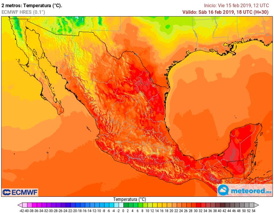 Se prevén temperaturas superiores a 40 grados Celsius en regiones de San Luis Potosí, Nayarit, Jalisco, Michoacán, Guerrero, Oaxaca y Chiapas, y de 35 a 40 grados Celsius en zonas de Nuevo León, Tamaulipas, Durango, Hidalgo, Querétaro, Puebla, Morelos, Sinaloa, Colima, Campeche, Yucatán y Quintana Roo.