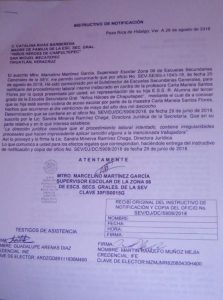 Catalina Rivas Ribadeneira, ex presidenta de la Asociación de padres de familia y miembro de la Contraloría del Consejo de Participación Social de la referida institución, con documentos en mano acusó al Supervisor escolar de la zona 06 de secundarias, Marcelino Martínez García de encubrir a maestros agresores, ya que existen señalamiento de años atrás sin sanción hacia los acusados.
