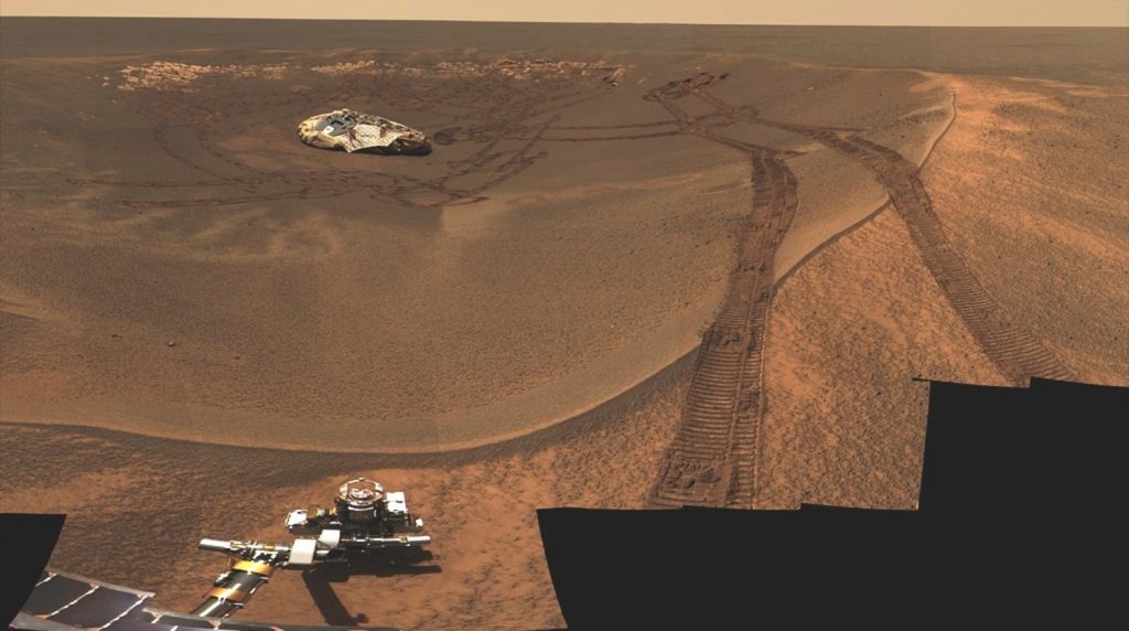 «Quince años en la superficie de Marte es un testimonio no solo de una magnífica máquina de exploración, sino también del equipo dedicado y talentoso que nos ha permitido ampliar nuestro espacio de descubrimiento del Planeta Rojo», dijo John Callas, gerente de proyectos de Opportunity en el Laboratorio de Propulsión a Chorro de la NASA en Pasadena, California. «Sin embargo, este aniversario no puede ser más que un poco agridulce, ya que en este momento no conocemos el estado del rover. Estamos haciendo todo lo posible para comunicarnos con Opportunity, pero a medida que pasa el tiempo, la probabilidad de un contacto exitoso con el rover sigue disminuyendo».