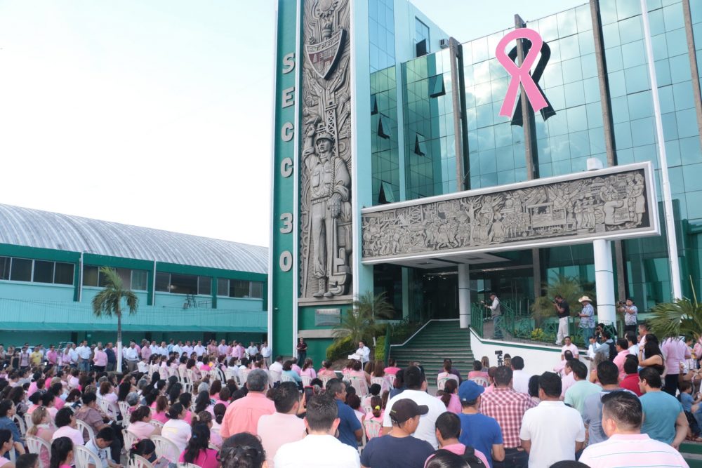 “Hoy la Sección 30 se suma a esta campaña permanente de prevención y lucha, para decirle a las mujeres trabajadoras petroleras que no están solas, que cuentan con una organización sindical preocupada y ocupada en su salud”, expresó el secretario General de la Sección 30, José Juan Soni Solís, durante el evento realizado en la explanada frente al edificio sindical.