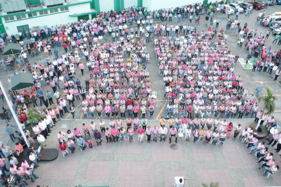 Poza Rica, Ver.- Mujeres y hombres, empleados de la empresa Petróleos Mexicanos (Pemex) y adscritos al Sindicato de Trabajadores Petroleros de la República Mexicana (STPRM) se sumaron a la campaña de concienciación respecto a la prevención del cáncer de mama, que representa una de las principales causas de muerte entre féminas a nivel nacional.